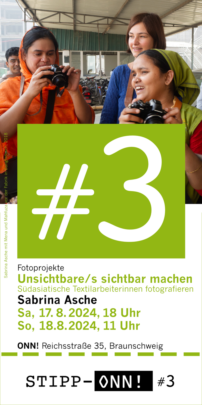 »Um Grenzen des Subjektiven zu durchbrechen, entschied ich mich 2018 die Kamera den Frauen zu überlassen, die in der Textilindustrie tätig sind. ...Arbeiterinnen aus der Textil- und Bekleidungsindustrie haben sich für vier Wochen damit beschäftigt, ihren Alltag selbst zu fotografieren und assoziativ festzuhalten. Entstanden sind 3000 Bilder.«(Sabrina Asche)