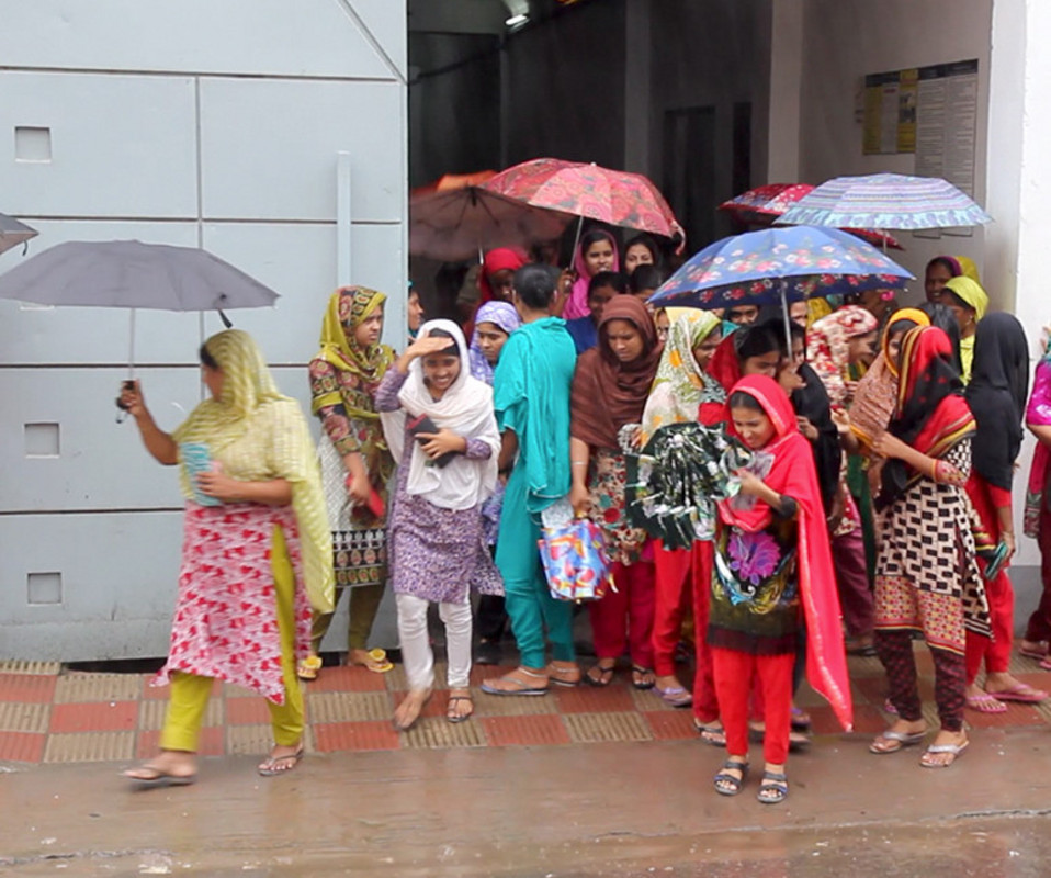Südasiatische Textilarbeiterinnen fotografieren